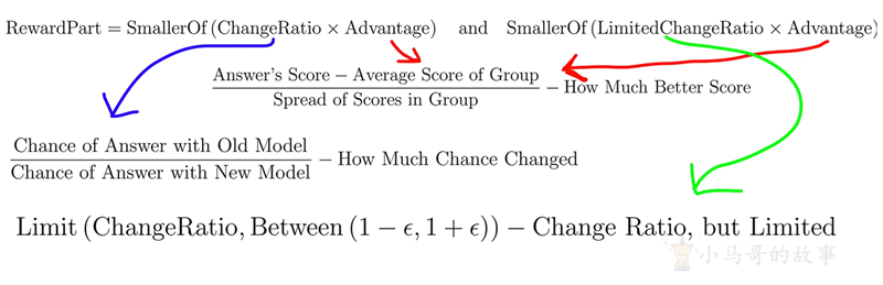 ChangeRatio × Advantage:答案可能性的变化,乘以其优势分数。LimitedChangeRatio × Advantage:相同,但变化率有限。通过选择较小的值,模型可确保学习过程保持平稳,不会对性能的大幅变化反应过度。结果是“好答案奖励”,鼓励模型改进而不会过度补偿。