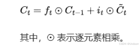 细胞状态更新 根据遗忘门和输入门的结果,对细胞状态进行更新。具体公式如下:
