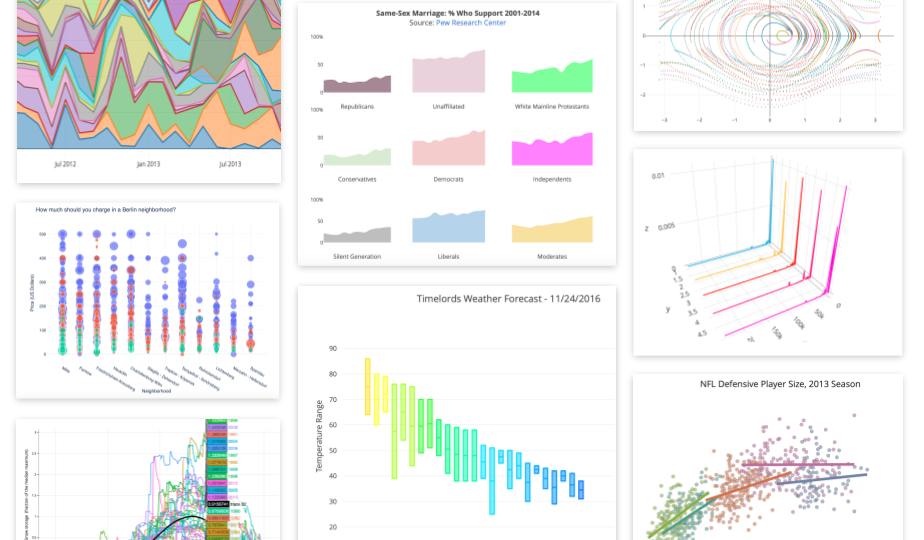 受 Seaborn 和 ggplot2 的启发,它专门设计为具有简洁,一致且易于学习的 API 。只需一次导入,您就可以在一个函数调用中创建丰富的交互式绘图,包括分面绘图(faceting)、地图、动画和趋势线。Plotly是完全免费的,凭借其宽松的开源 MIT 许可证,可以随意使用它。