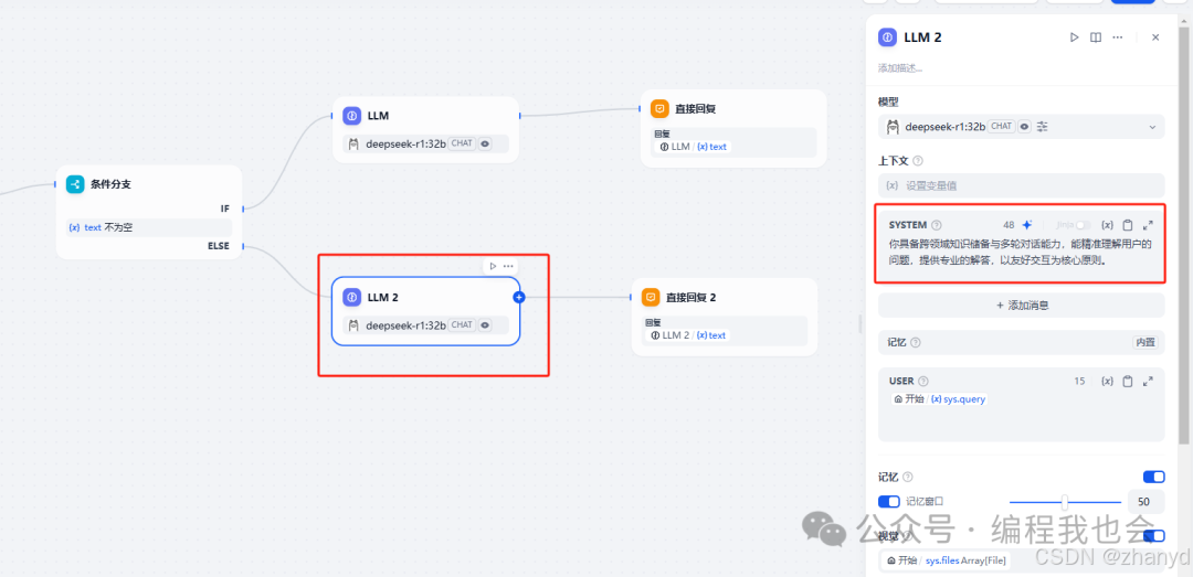 如果没有文件上传,添加一个LLM2节点直接回答用户的问题,SYSTEM中添加描述(根据实际情况描述):