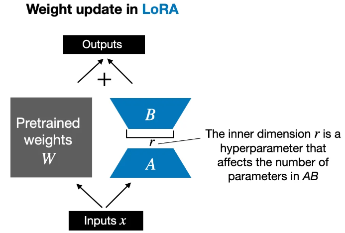 如果权重矩阵包含7B个参数,则权重更新矩阵也包含7B个参数,计算矩阵非常耗费计算和内存。