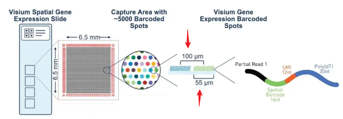 背景了解:10 visum空转的数据 spot直径为 55 μm,点之间的圆心距是100μm