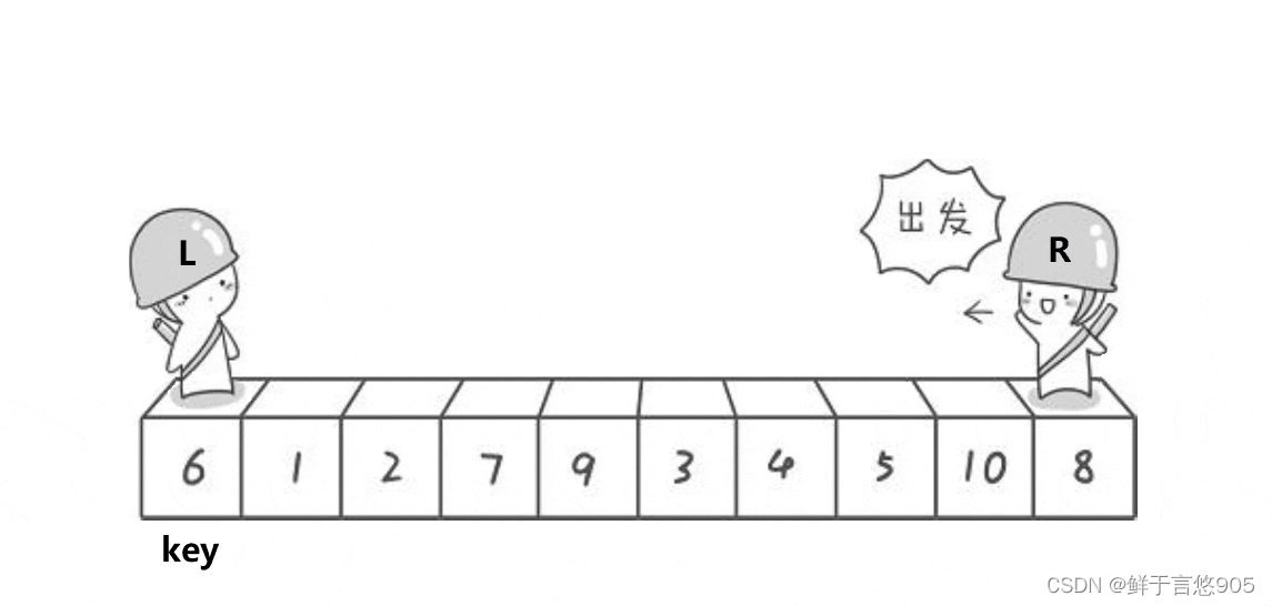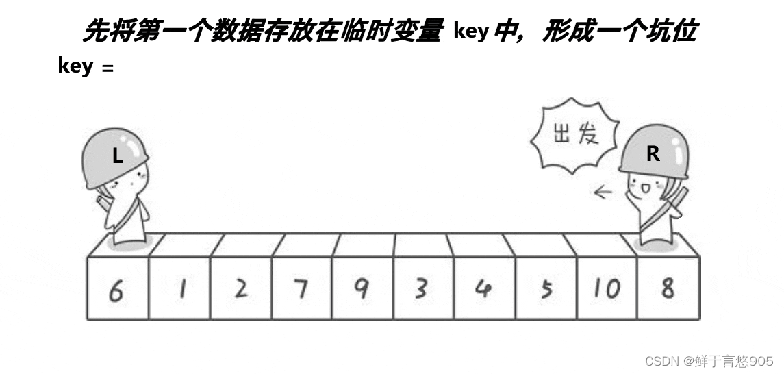 int keyi = left;:定义了一个变量keyi,并初始化为区间的左端点。keyi将作为基准(pivot)值,用于划分数组。