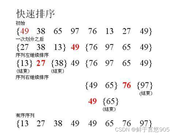 然后,将左边和右边的子数组进行递归调用快速排序,直到区间大小为1或不存在,完成整个排序过程。