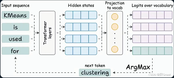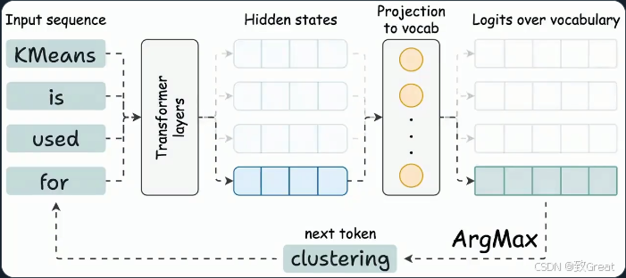 LLM 用于推理的时候就是不断基于前面的所有 token 生成下一个 token。